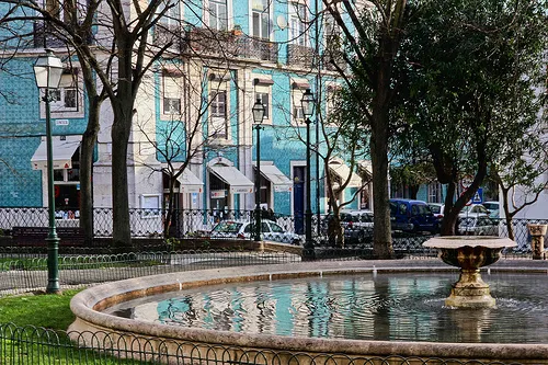 Tiene mucho carácter lisboeta, conserva comercio local tradicional y en su sonido ambiente se mezcla el chirriar del tranvía cuando pasa sobre las vías con el de los vecinos conversando en la plaza y las terrazas.